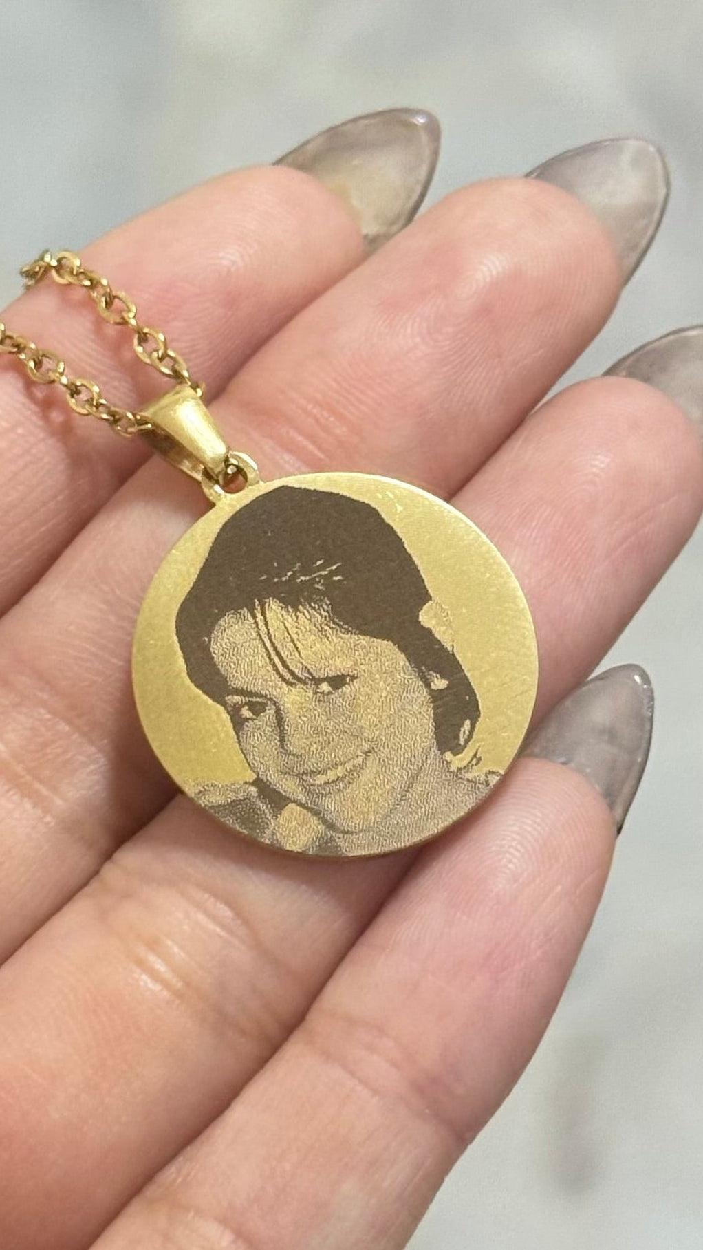 Este collar de acero inoxidable presenta un dije circular de 2.5 cm personalizado con tu fotografía favorita y un texto especial. Es una forma única y significativa de llevar cerca tus recuerdos más queridos, combinando durabilidad y estilo en una pieza elegante que puedes usar todos los días. Perfecto para regalar o para ti, este collar captura momentos importantes con un toque personal.