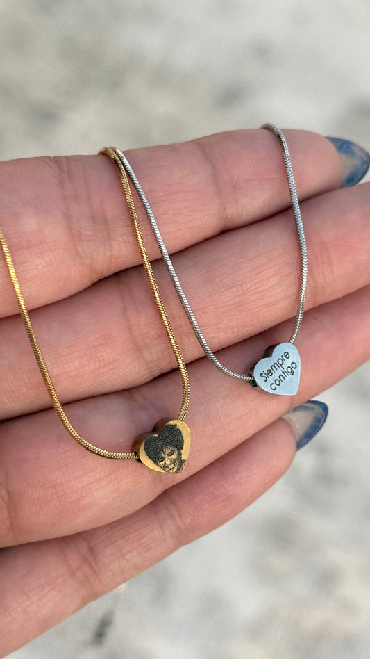 Collar corazón con texto a mano y foto - Acero inoxidable